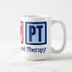 A peace sign, heart, and the letters PT for a physical therapist. Peace Love Physical Therapy mug gift.