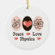 Peace symbol, heart and an atom with a nucleus and four orbiting electrons in pink and brown on cute physics t shirts, geek apparel, clothing, stationery and nerd gear make cute gifts for a physics teacher, student, teaching assistant or professor of science.