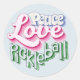 Peace Love Pickleball retro design in blue, pink and green. Makes a great gift for pickle ball players.