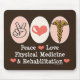 Peace symbol, heart and caduceus in pink, brown and gold on medical speciality physician gifts, MD apparel, clothing, physiatrist shirts and more physiatry merchandise for a Physical Medicine and Rehabilitation doc. This makes a cute Doctor's Day, med school graduation, doctor, residency program acceptance, pre-med, board certification, specialist or match day gift for him, her, family and kids.
