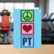 A cute Christmas physical therapist gift featuring a pretty green peace sign, red heart, and the PT in blue for physical therapy. Buy this present for your favorite physical therapist.