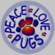 Our Peace Love Pugs peace symbol with paw prints makes this a very cute hoodie for girls who love pugs. An original Pug Manor design.
