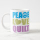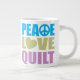 Peace Love Quilt...What else do you need in life? Perfect gift for any quilting addict. It doesn't matter if you teach others how to quilt, you spend every free moment making quilts, you're a part of your local quilters club, your home is filled with fabric swatches waiting to be use in your next quilt, or you just love the look of quilts and have a large collection of them even though you know nothing about quilting yourself...you're addicted to quilting! Funny gift idea for any quilter. Great for any quilting diva. Design features a heart and a peace sign. See our shop for more fun and unique Peace Love...shirts and gifts.