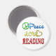 A peace sign, heart and the words - Peace Love Reading, is a great way for a school teacher or librarian to promote reading. Have fun with this shiny retro design.