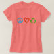 Peace, Love, Recycle. This Peace t-shirt can be personalised or customised with a phrase, name, or any message you would like, large variety of fonts and colours available here for you to customise it yourself on the front or back side.