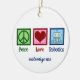Peace Love Robotics Christmas ornament with a peace sign, heart, and a cool robot made with nanotechnology. A cute artificial intelligence professor or robotic major gift that is personalized with your text.