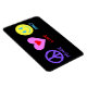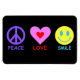 Bright and cheery symbols of peace, love and happiness. This design has a colourful peace symbol, heart and happy face. So smile and spread the message of peace to the world!