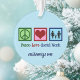 Peace Love Social Work ornament. A cute social worker Christmas gift featuring a family holding hands next to a peace sign and heart. Social services present.