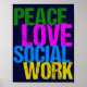 Cute social worker poster gift that reads PEACE LOVE SOCIAL WORK in neon letters. Order for your social services office!