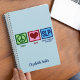 A cute custom SLP notebook for your speech therapist that reads Peace Love Speech Language Pathology. A cool personalised speech pathologist gift. A great journal for someone to keep their speech therapy notes on patients.