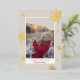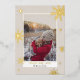 Send your Christmas greetings with this chic and modern winter Christmas design featuring snowflakes, stars with white snow, add your photo with a modern geometric frame border on ivory beige sand with real gold foil. All the text colour is editable.