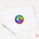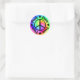 Peace & Love sticker - peace sign and hearts on a rainbow spiral background.