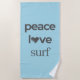 Peace Love Surf Life Coastal Blue Surfing Graphic Beach Towel