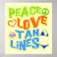 Few things make a beach bum happier than peace, love and tan lines - beautiful, beautiful tan lines. Retro 60s style, multi-coloured design in a weathered vintage look.