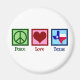 Peace Love Texas magnet. A cute Texan gift with a peace sign, heart, and the state of Texas flag.
