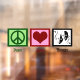Peace Love Theatre window cling for a drama club or theatre member with a peace sign, heart, and theatrical masks.