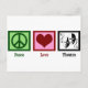 Beautiful theatre company Christmas postcard for actors who love the performing arts. A cute drama club postcard for theatre lovers. Peace Love Theatre.