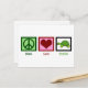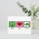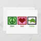A green peace sign, a heart, and an adorable turtle on a cute Peace Love Turtles postcard.