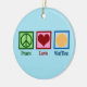 A cute waffle lover gift for a breakfast diner or cafe that serves yummy food. Peace Love Waffles. Funny waffle lover present.
