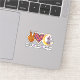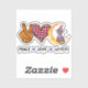 This playful Halloween sticker features the phrase “Peace, Love, Witch” with three bold icons: a hand flashing the peace sign, a purple and orange chequered heart, and a witchy black cat curled inside a crescent moon. With vibrant colours and spooky-chic energy, it’s the perfect blend of retro fun and magical charm—ideal for witchy vibes all season long.