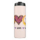 This playful Halloween thermal tumbler features the phrase “Peace, Love, Witch” with three bold icons: a hand flashing the peace sign, a purple and orange chequered heart, and a witchy black cat curled inside a crescent moon. With vibrant colours and spooky-chic energy, it’s the perfect blend of retro fun and magical charm—ideal for witchy vibes all season long.