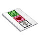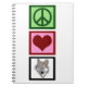 A green peace sign, red heart, and a grey wolf. A pretty gift for someone who loves wolves.
