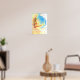 Share Christmas peace with this Magical Christmas Tree art print poster. Original artwork by Anne Bell features Christmas tree topped with blue light on a blue, orange, yellow background.