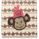 A cute pink, white, brown, and tan shower curtain with lots of cute monkeys with pink hats with peace symbols!