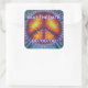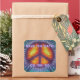 Square save-the-date sticker to match our “Peace Must Come” invitation with an image of a purple tie-dye peace symbol on purple, orange, yellow and green tie-dye. Customise with the date of your party. See matching invitation, envelopes, favour bag, favour box, favour tag, gift bags, label and wrapping paper. See the entire Psychedelic 60s Sticker collection in the INVITES | Stickers & Labels section.
