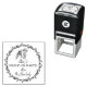Create your own PEACE ON EARTH Angel in Prayer Christian Christmas self-inking stamp. This stamp features a kneeling angel in prayer with the words 'PEACE ON EARTH' and your family name in a hand-writing style script. The border is a delicate floral and botanical wreath.