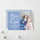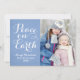 Peace on Earth Beautiful Script Blue Photo Holiday Card
