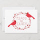 Festive holiday design features hand drawn modern red wreath with "Peace on Earth" text and two Christmas red cardinal birds.