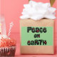 Cute and meaningful Christmas themed graphic with red and green accented peace signs in each letter. Wishing Peace on Earth... on Christmas and everyday.