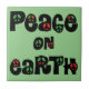 Cute and meaningful Christmas themed graphic with red and green accented peace signs in each letter. Wishing Peace on Earth... on Christmas and everyday.
