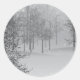 Peace on Earth Gray Snow Scene Classic Round Sticker