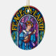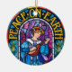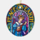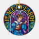 Peace on Earth Pre-Raphaelite style Christmas decoration. Illustrated in water colour and coloured pencil, featuring a stained glass design after Burne Jones.