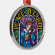 Peace on Earth Pre-Raphaelite style Christmas decoration. Illustrated in water color and colored pencil, featuring a stained glass design after Burne Jones.