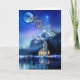 Soft moonlight and the light shining from the windows of a country church, create a peaceful glow upon a snowy landscape. This Christmas card wishes the recipient "Peace on Earth", a holiday greeting that is appropriate for all men and women of good will, no matter their religious persuasion. This "Peace on Earth" Christmas greeting, in wintery shades of blue, has a touch of pink as well as the yellow glow of the chapel windows. The atmosphere connotes a silent night where the only sound might be Christmas carols drifting from the old stone church.