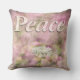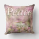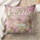 A single white flower stands in the centre against a soft-focus background of pink and green hues, conveying a tranquil atmosphere. Above the flower, the word "Peace" stretches across in a gentle, serif font, complementing the serene vibe of the photo.