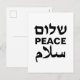 Peace Shalom Salaam black and white modern typography holiday postcard.