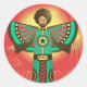 An Angel in colours of brown and green radiates an energy of peace on a mandarin coloured background