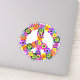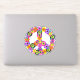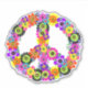 A floral peace sign in shades of pink, turquoise, yellow, orange, purple, green and black.