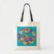 Peace Sign Floral Cutout on Turquoise Tote Bag