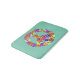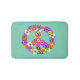 A floral peace sign in shades of pink, yellow, orange, purple, green, white and black.