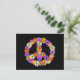 A floral peace sign in shades of pink, yellow, orange, purple, green, white and black.