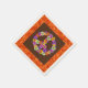 This paper napkin flaunts a floral peace sign in shades of pink, turquoise, yellow, orange, purple, green and black. An abstract in shades of orange provides a frame.