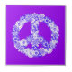 A peace sign made up of delicate shades of purple, lavender and white flowers adorn a purple background.