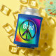 A graphic hippie peace sign design by artist/designer Charmaine Paulson on a can cooler.