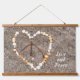 Peace, Love and the Beach! A beachy coastal beach wood topped hanging tapestry with a peace sign made from a heart of seashells in the sand; a perfect combination for any beach lover. Personalise with Names for some fun in the sun.