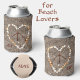Peace Sign in Heart on Sand Beach Can Cooler